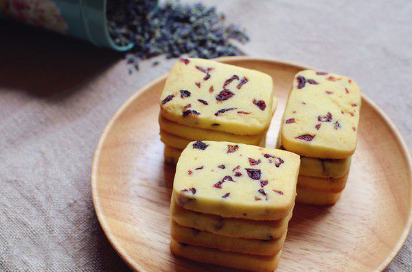 黃油250g、糖粉150g、細(xì)鹽1g、雞蛋1個(gè)、低筋面粉350g、蔓越莓干125g。